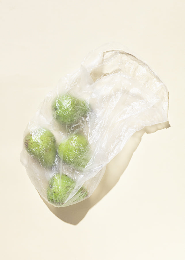 In this series of photographs, everyday foods become silent protagonists enclosed within delicate transparent plastic bags. Each image reveals a dialogue between the natural and the artificial, between organic vitality and the fragility imposed by the wrapping. The shiny surfaces of the plastic interact with the texture of the food, creating a play of light, reflections, and shapes that hovers between the aesthetic and the unsettling.